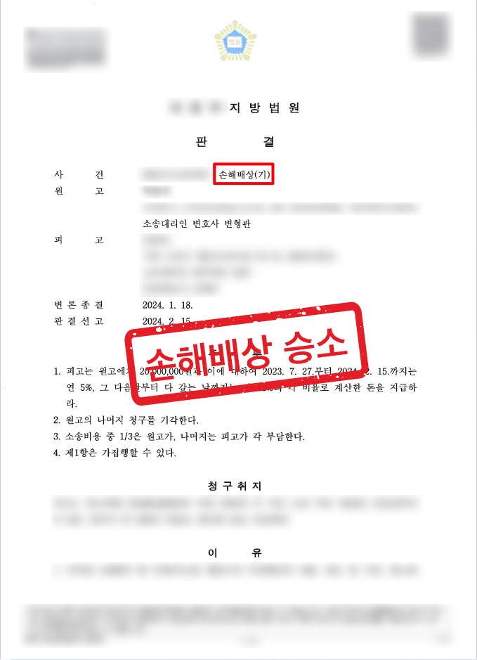 심적으로 상당한 괴로움을 느끼던 의뢰인은 판결로나마 작은 위로를 얻을 수 있었고, 그러한 결과를 얻어낼 수 있었기에 변호사로서도 뿌듯한 마음을 느낄 수 있었던 사건이었습니다.