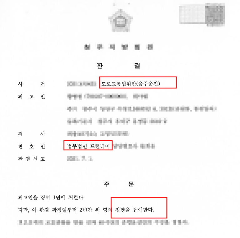 생계형 운전의 불가피성을 입증해 집행유예로 선처받도록 도와드렸습니다.