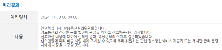 3. 최종 결과 - 악성리뷰 방송통신심의위원회 분쟁조정신청 삭제 성공