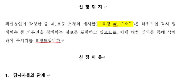 저희가 실제로 작성한 신청서의 신청취지 발췌 (일부 블러처리한 점 양해 부탁드립니다)