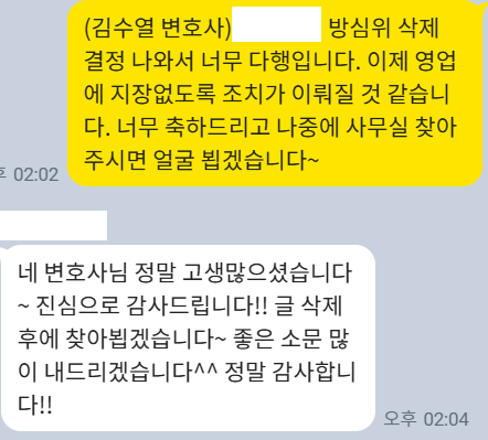 악성리뷰 방송통신심의위원회 분쟁조정신청에 의한 삭제 성공이야기는 여기까지입니다.