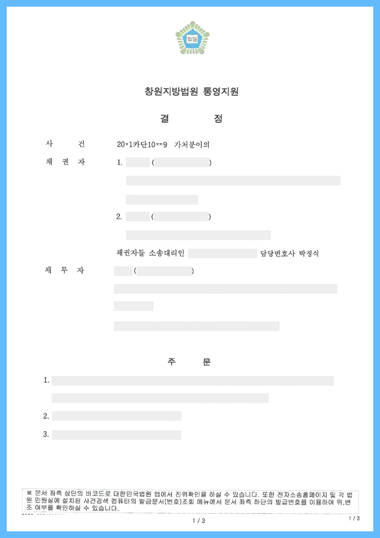채권자들은 채무자에게 채무자가 오래전 피상속인의 상속재산에 임의로 매매를 원인으로 소유권이전등기를 경료해간 것이 무효라는 취지의 본안 소송을 제기하기로 하고, 위 상속재산에 대해서 부동산처분금지가처분 결정을 받아두었습니다.