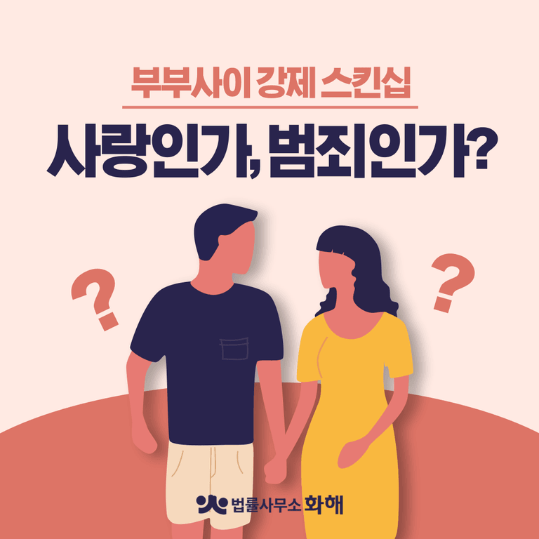 사회 관념상 "부부 사이에 무슨..."이라고 생각할 수 있지만, 결혼이 동의 없는 성관계에 대한 면죄부가 될 수는 없습니다. 아무리 부부 간이라도 서로의 의사를 존중하고 동의를 구하는 것이 건강한 관계의 기본일 텐데요. 특히 임신 중이거나 건강상의 이유로 스킨십이 어려운 상황에서도 이를 억지로 강요한다면, 그 행위는 상대방의 신체적, 정신적 건강을 해치는 행위가 될 수 있습니다. 이처럼 오늘은 법률사무소 화해와 함께 부부 사이에 행해지는 강제 스킨십이 과연 사랑인지 혹은 범죄인지 그리고 법적 처벌까지도 가능한지에 대해 다루어 보겠습니다.