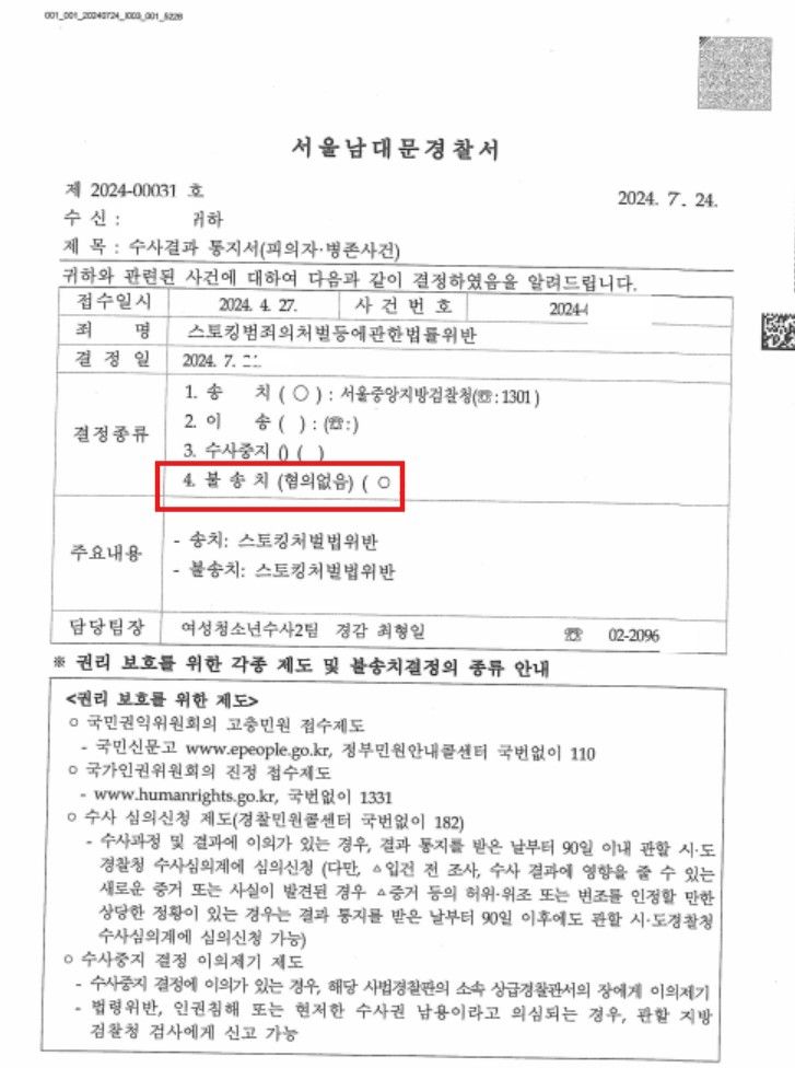 ![[스토킹처벌법] 대부분 혐의를 불송치(혐의없음)로 종결](/_next/image?url=https%3A%2F%2Fd2ai3ajp99ywjy.cloudfront.net%2Fuploads%2Ftitleimage%2Foriginal%2F5b164e72ccc316d6ee5d82a5-original.jpg&w=3840&q=75)