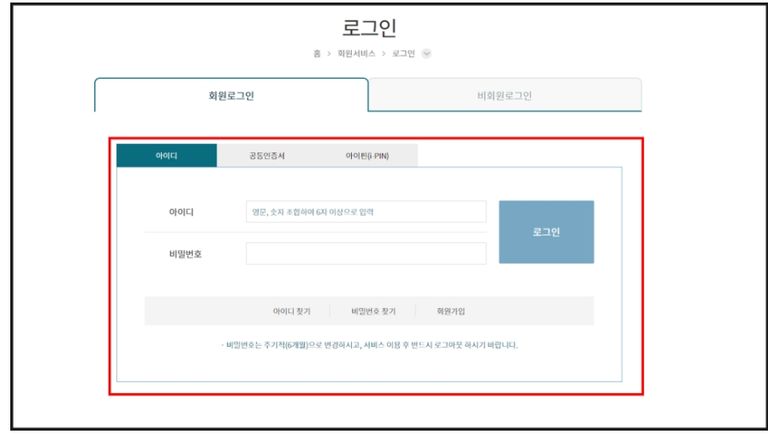 3. 회원로그인 또는 비회원로그인