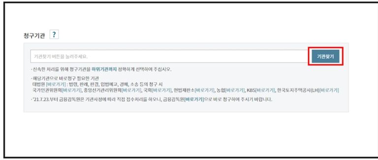 5. ‘기관찾기’를 클릭하여 청구기관 작성
