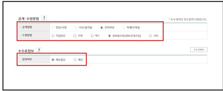 6. 공개·수령방법 및 수수료정보 선택