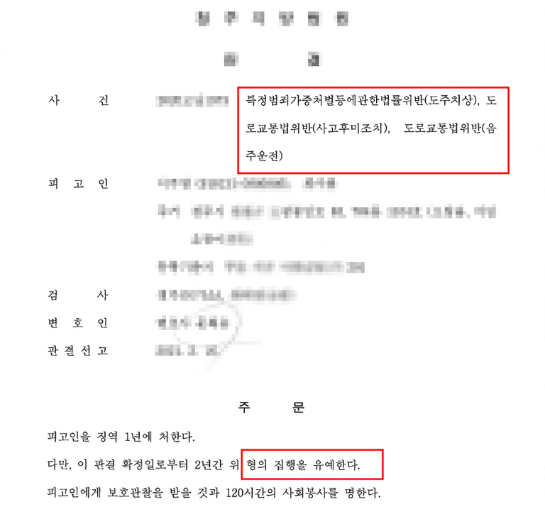 특가법(도주치상), 특가법(위험운전치상), 도로교통법(사고후미조치), 도로교통법(음주운전)..