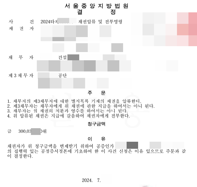 공사대금을 받지 못하신 의뢰인을 도와 채무자의 제3채무자에 대한 채권에 대해 압류 및 전부명령을 받은 이후,