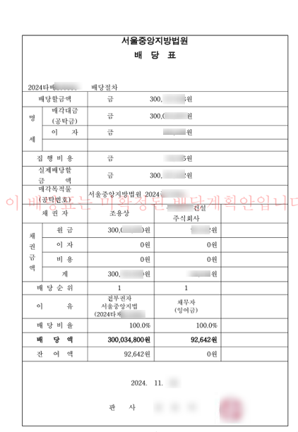 배당기일 당일 오전 10시경 배당기일이 열렸는데요.