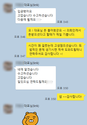 의뢰인께서는 여러 절차 끝에 결국 집행을 하여 돈을 받을 수 있게 되시어 매우 기뻐하셨고, 저 또한 대리인으로서 매우 보람있었습니다.