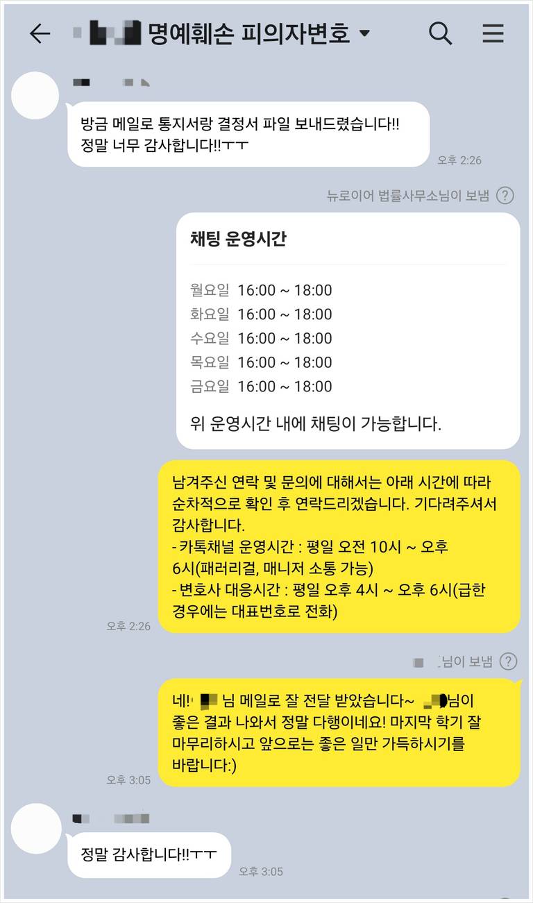 저희를 찾아주신 의뢰인분들의 감사 카톡 후기 입니다. : )