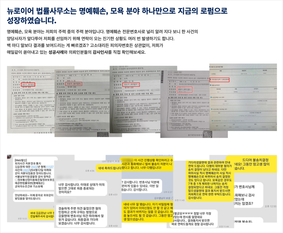 저희는 명예훼손, 모욕죄 사건을 시작으로 지금의 사이버 범죄 특화 로펌까지 성장해왔는데요.