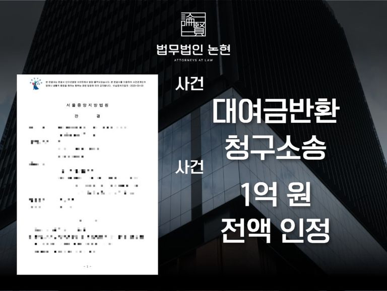 대여금반환청구소송, ‘1억원’ 인정받은 해결사례
