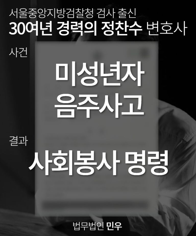 따라서, 지금부터 미성년자 음주사고, ‘사회봉사’로 구제받은 성공사례를 소개해 드릴 테니, 이 글을 읽어보시고, 도움이 필요하시다면, 검사 출신 정찬수 변호사에게 상담을 요청하셔서 법적인 조력을 받으시길 바랍니다.