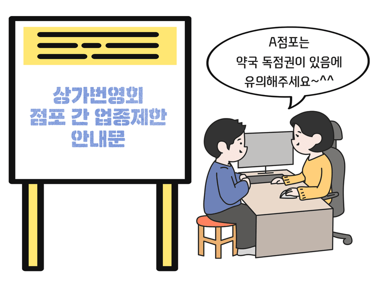 상가번영회에서 점포 간 업종제한 및 경업금지에 대해서 공문을 보내고 안내문을 게시하여서 알려왔던 점,