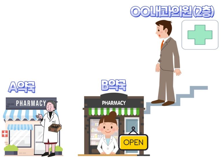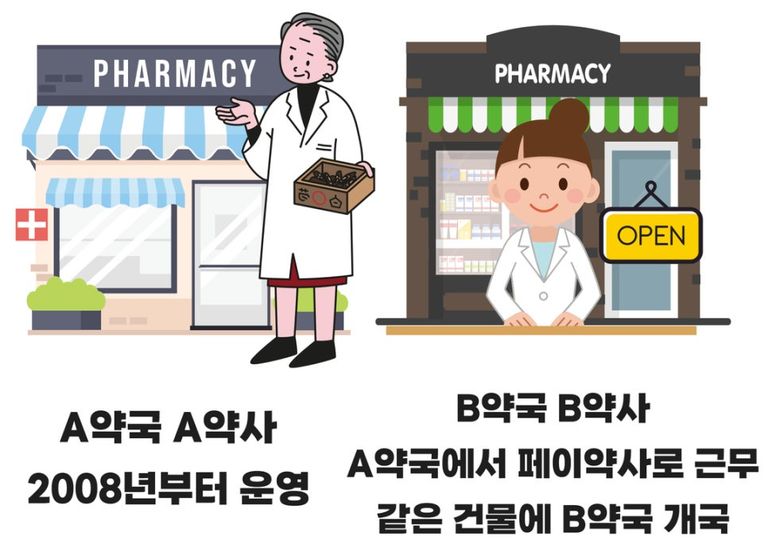 B 약사 : A 약국에서 파트타임 약사로 근무하다가 퇴사 후 같은 건물에서 'B 약국'을 개업