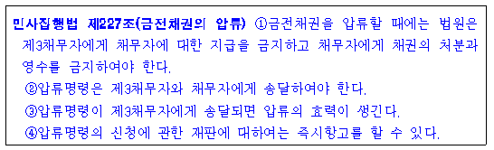 이에 따라 제3채무자는 채무자에게 채권에 따른 돈을 지급하는 등의 행위를 해서는 안됩니다.