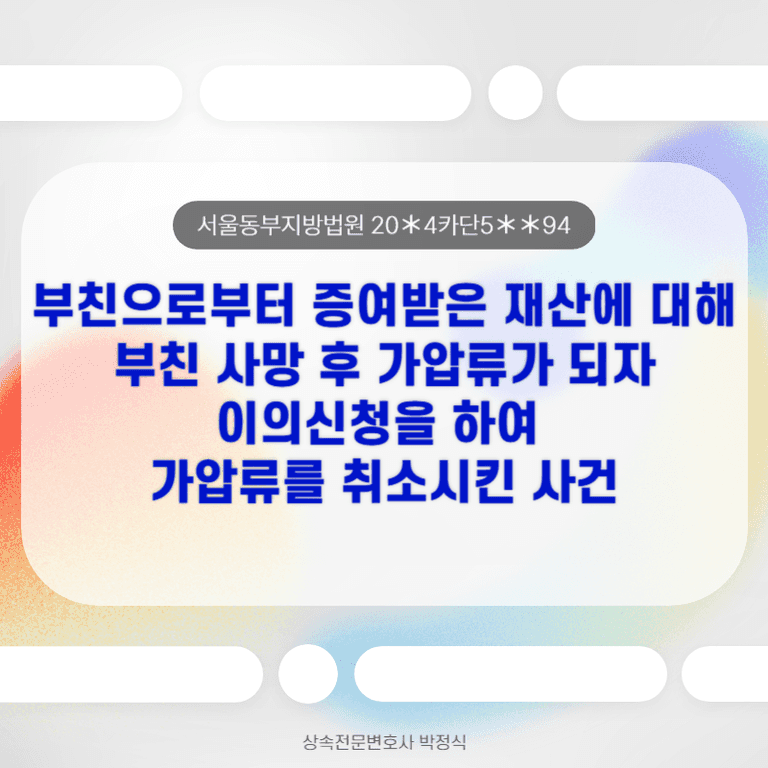 (2) 부친 사후에 상속채무에 대해 한정승인을 한 재산에 대해서 재산을 분할받기도 전인데, 생전에 증여받은 부동산에 대해서 가압류를 할수 있는지 여부 등이 쟁점이 되었습니다.