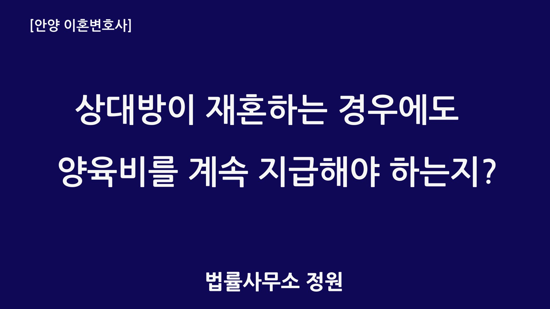 양육비는 비양육권자와 미성년자녀 사이의 친자관계가 유지되고 있는 이상 지급해야 하는 것인데, 양육권자가 재혼을 한다고 해서 비양육권자와 미성년자녀 사이의 친자관계가 끊기는 것은 아니기 때문입니다.