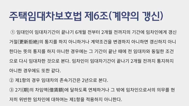 임대차계약 종료 두 달전에 임대인, 임차인 둘 다 서로에게 갱신거절의 통지를 하지 않으면, 임대차계약이 묵시적으로 갱신된다는 것은 이제 많은 분들이 잘 알고 계신데요.