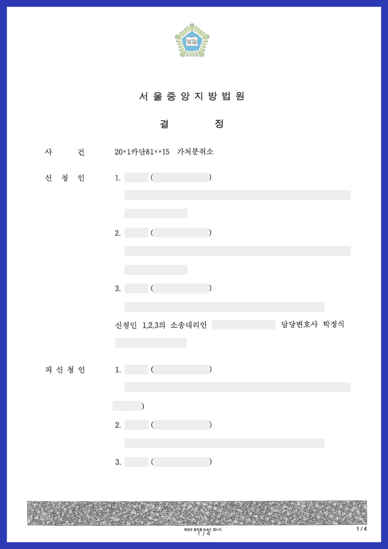 이후 3년 동안 진행된 유류분반환청구 사건의 결과 딸들도 이미 부친으로부터 받은 재산이 많아 딸들의 유류분반환청구는 모두 기각되었음에도 딸들이 위 부동산처분금지가처분을 해제해 주지 않아 모친과 아들 2명이 위 가처분에 대한 취소청구를 한 사안입니다.