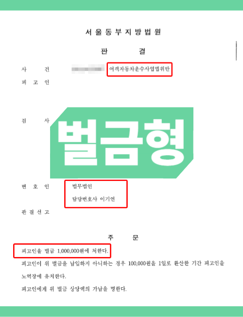 그러니 혹시라도 이렇게 여객자동차운수사업법 위반으로 연루가 되어 곤혹스러운 상황에 부닥쳐 있다면 관련 사안을 충분히 다뤄본 변호사를 찾아가 자문을 구하고 큰 피해로 이어지는 것을 막아 보시기 바랍니다.