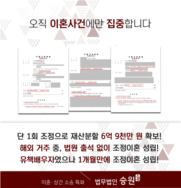 신청인과 피신청인 모두 서로를 비난하지 않고 존중하면서, 최대한 빠른 시일 내에 혼인관계가 해소되기를 바랐기 때문에, 승원은 조정이혼진행으로 깔끔하게 혼인관계를 해소하는 방법을 권해드렸습니다.