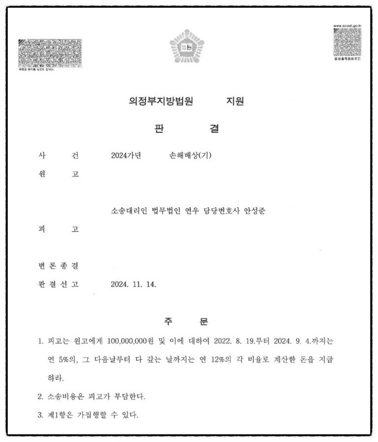[최종 결과] - 손해배상 청구 소송 전부 승소