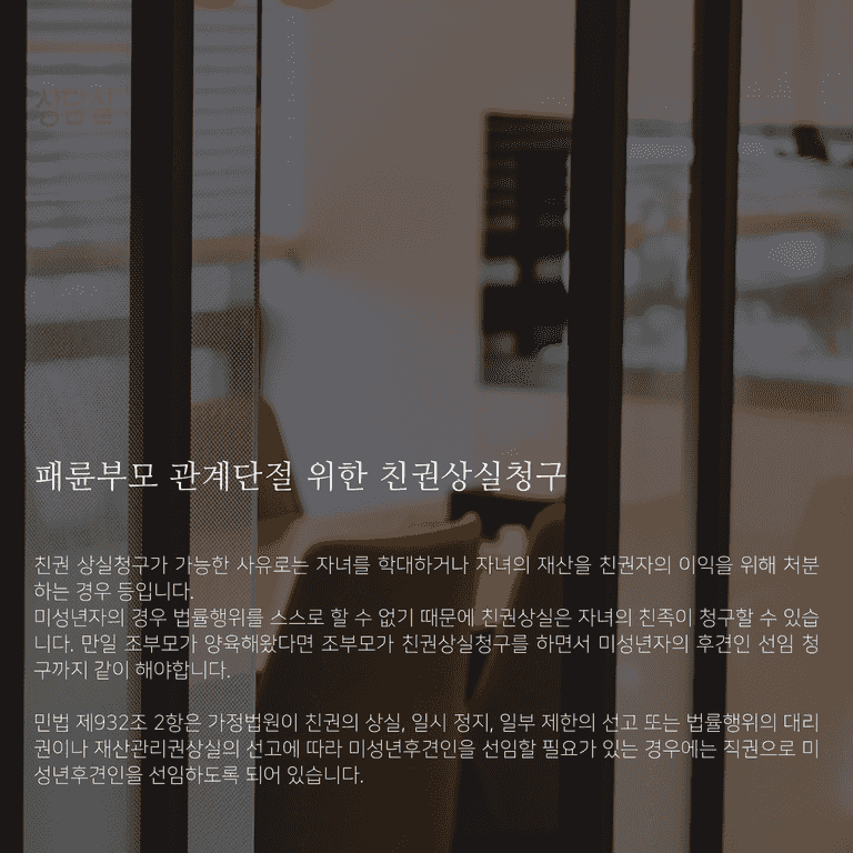 이번 시간에는 패륜 부모와의 관계 단절을 위한 친권상실청구 방법과 그 법률적 효과에 대해 알아보도록 하겠습니다.