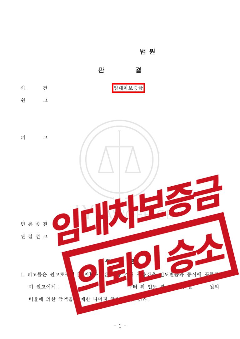 이와 같은 변호사의 조력에 따라, 법원은 임대인인 피고에게 임대차 보증금을 지급할 것을 명하였습니다.