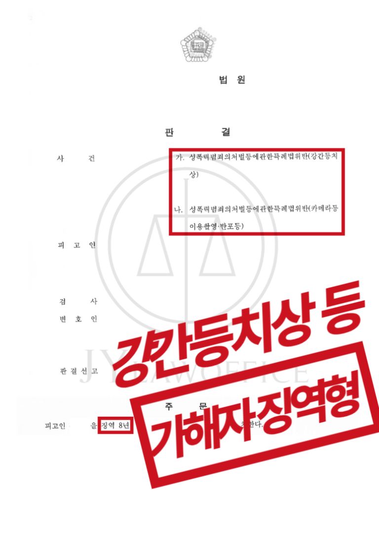 이와 같은 변호사의 조력에 따라, 가해자는 징역 8년 등의 판결과 성폭력 치료프로그램 이수 등의 성범죄 보안처분을 받고 사건을 종결시킬 수 있었습니다.