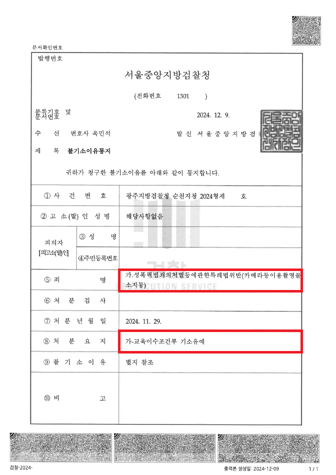 이러한 저의 조력을 바탕으로 A씨는 최근 '윤XXX' 사건은 대부분 구약식 또는 구공판되고 있음에도 불구하고 '기소유예' 처분을 받음으로써 일생일대의 위기에서 벗어날 수 있었습니다.