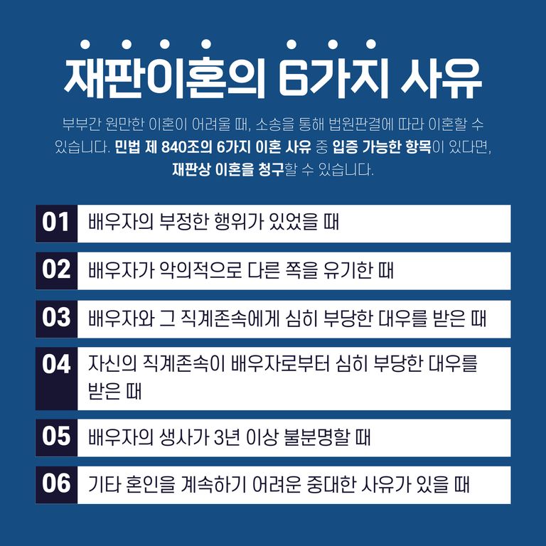이는 우리 민법 제840조에서 규정하고 있는 재판상 이혼 사유의 6가지를 유책주의에 근거하고 있다고 판단하기 때문입니다.