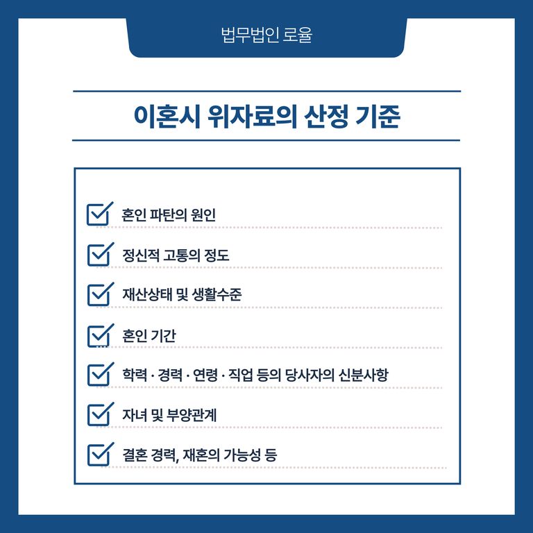 현재 우리 법원은 당사자의 연령, 직업, 재산상태, 혼인 생활의 내력 및 기간, 혼인이 파탄에 이르게 된 경위 등을 참작하여 위자료를 산정하고 있습니다.
