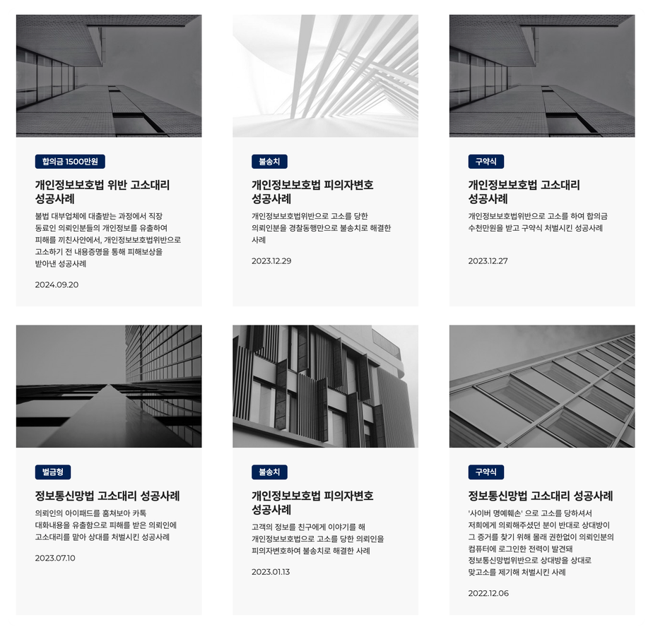 실제로 계속 개정되는 법안을 팔로우업하며 아래와 같이 다양한 사례에서 도움을 드려왔습니다.