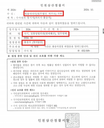 사건을 담당한 인천삼산경찰서는 의뢰인의 혐의에 대해 모두 불송치 '무혐의처분'을 내려 주었고, 마침내 의뢰인께서는 억울한 누명을 벗고 자유로워질 수 있었습니다.