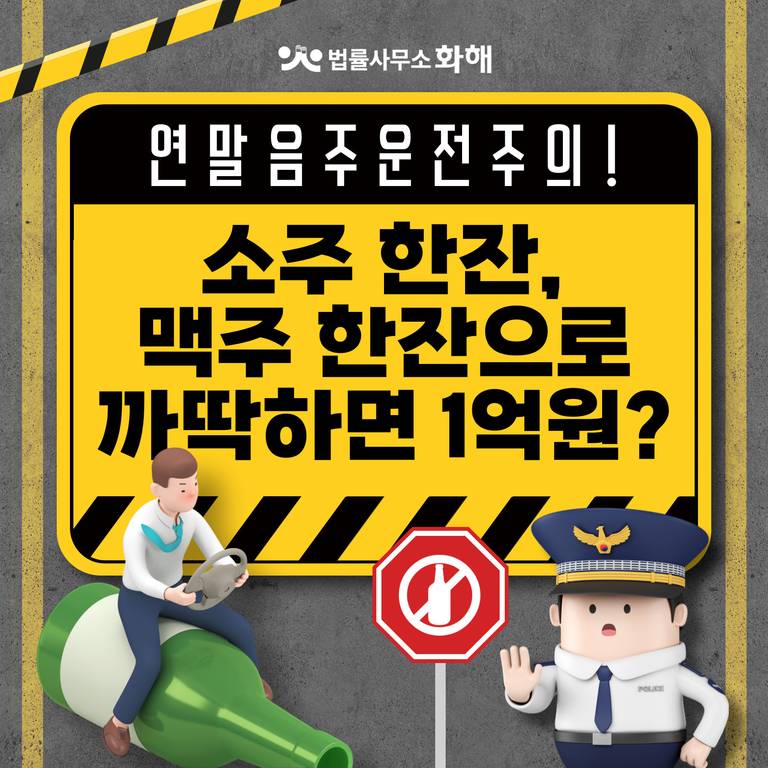 연말음주운전이 많아지는 만큼 경찰의 단속도 ‘집중’ 또는 ‘특별’ 단속으로 강화됩니다. 절대 처음이라고 봐주지 않습니다. 즉, 여러분의 생각보다 무거운 처벌이 내려질 수 있는 심각한 사안이기에, 이 글을 읽고 계신다면 신속하게 법률사무소 화해 음주운전 전문 변호사에게 연락주시기를 적극 권유해 드립니다.