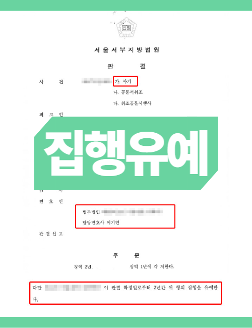 이외에도 스스로 범행을 인정한 후 피해자와 합의를 이루었다는 점과 주변인들의 탄원서를 활용해 유대가 뚜렷하다는 등의 사안을 기반으로 선처를 호소하였고, 그 결과 보이스피싱 사기 혐의에 대한 집행유예를 받아낼 수 있었습니다.