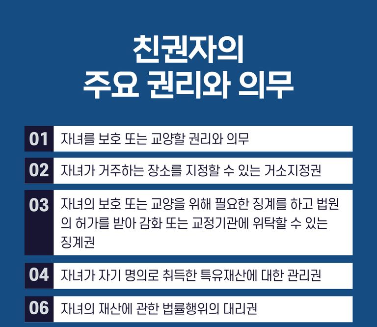 친권은 자녀 명의의 재산이 있고 자녀를 대리하여 행사할 때, 혹은 자녀가 수술을 하거나 여권을 발급해야할 때 등의 사유가 있을때 주로 사용됩니다.