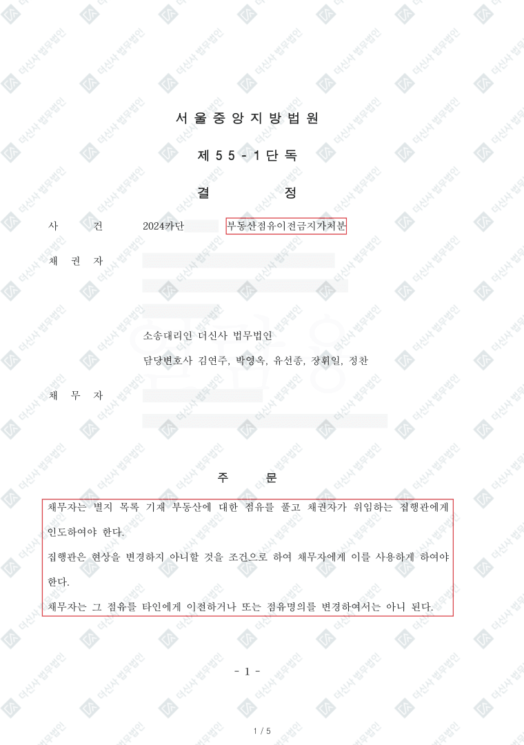 의뢰인은 더신사 법무법인의 조력으로 점유이전금지가처분을 받아 부동산 인도 소송을 진행할 수 있었고, 그 결과 부동산을 무사히 인도 받고 연체 차임도 회수할 수 있었던 성공적인 사례입니다.