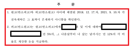 그 결과 위 내용처럼 재판부에서는 저희 태연법률사무소와 의뢰인 분의 손을 들어주었고, 전속계약해지 승소는 물론이며, 반소 위약벌 수억원 전액 방어의 승소 및 일부 반환받지 못한 금액에 대한 배상까지 인정하는 대성공 결과를확인하였습니다.