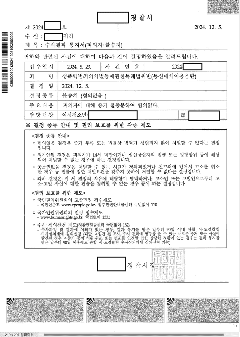 최종적으로 불송치 결정을 받을 수 있었지만 정말 힘든 싸움이었습니다.