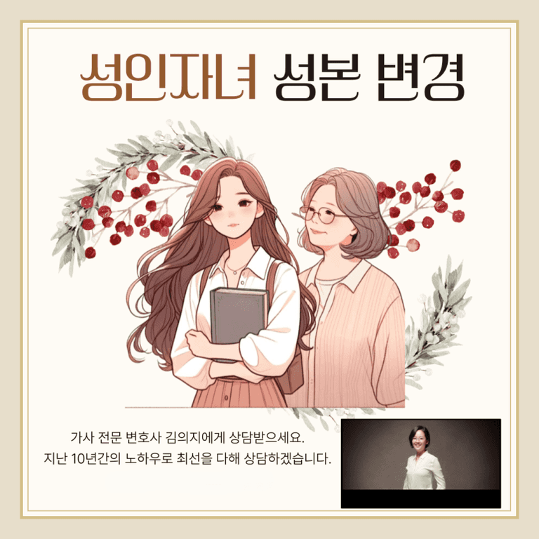 성본변경을 고민하시는 분들께서는 전문가와의 상담을 통해 본인의 사례가 어떤 가능성이 있는지 확인하시기 바랍니다. 저희 법률사무소는 항상 의뢰인의 입장에서 최선의 결과를 이끌어내기 위해 노력하고 있습니다. 성본변경으로 인한 불안과 고민이 있으시다면, 언제든 편하게 연락주시기 바랍니다.
