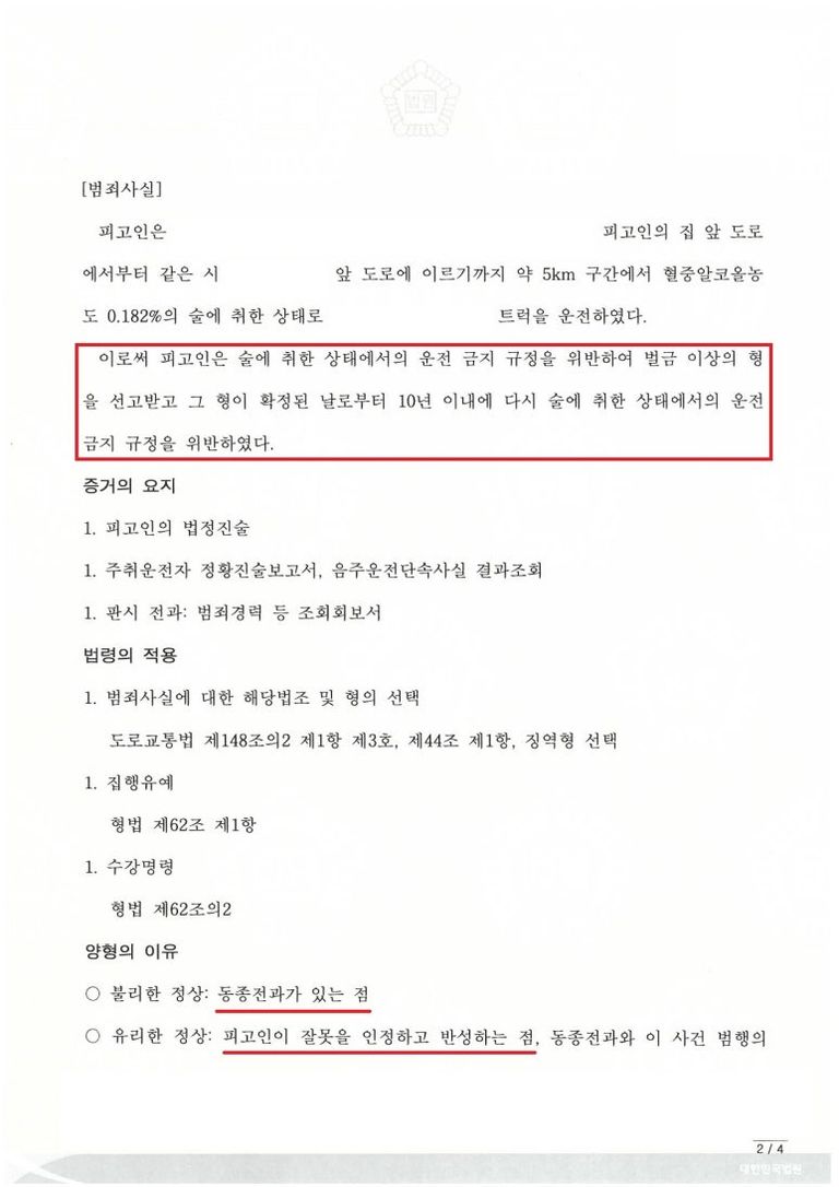 오늘 소개할 사례는 10년 내에 재범으로 음주운전이 적발되어 "윤창호 법" 적용 대상이었음에도 불구하고, 적극적인 변호로 구속을 막은 사례입니다.