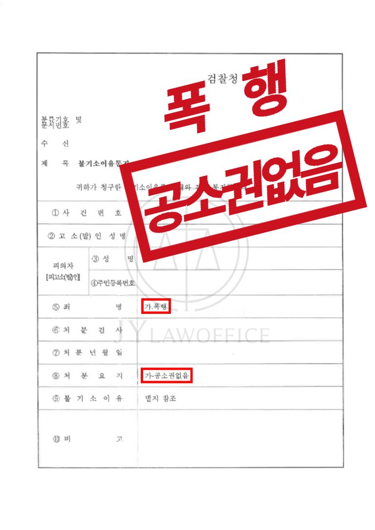 이와 같은 변호인의 조력에 따라, 의뢰인은 공소권 없음 처분을 받고 사건을 마무리하였습니다.
