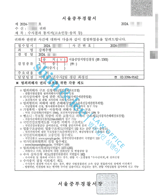 - 경찰은 가해자의 강제추행 혐의를 인정하여 검찰로 송치 결정을 하였습니다.