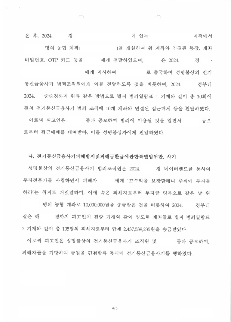 저는 즉각 가해자들 및 계좌 명의자를 사기 등으로 형사고소하였고 가해자가 체포 및 구속되어 기소되었으며 가해자가 합의를 요청하여 의뢰인은 피해액을 반환받고 합의하였습니다.