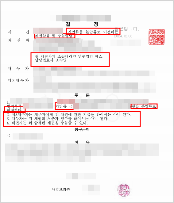 이에 저는 아내를 대리하여 남편이 공탁한 공탁금에 대해서 압류 및 추심명령신청을 진행하였고, 인용이 되어 결국 공탁금을 찾아갈 수 있게 되었습니다.