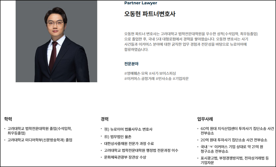 안녕하십니까? 사이버 범죄 특화 로펌 뉴로이어 오동현 파트너변호사입니다.